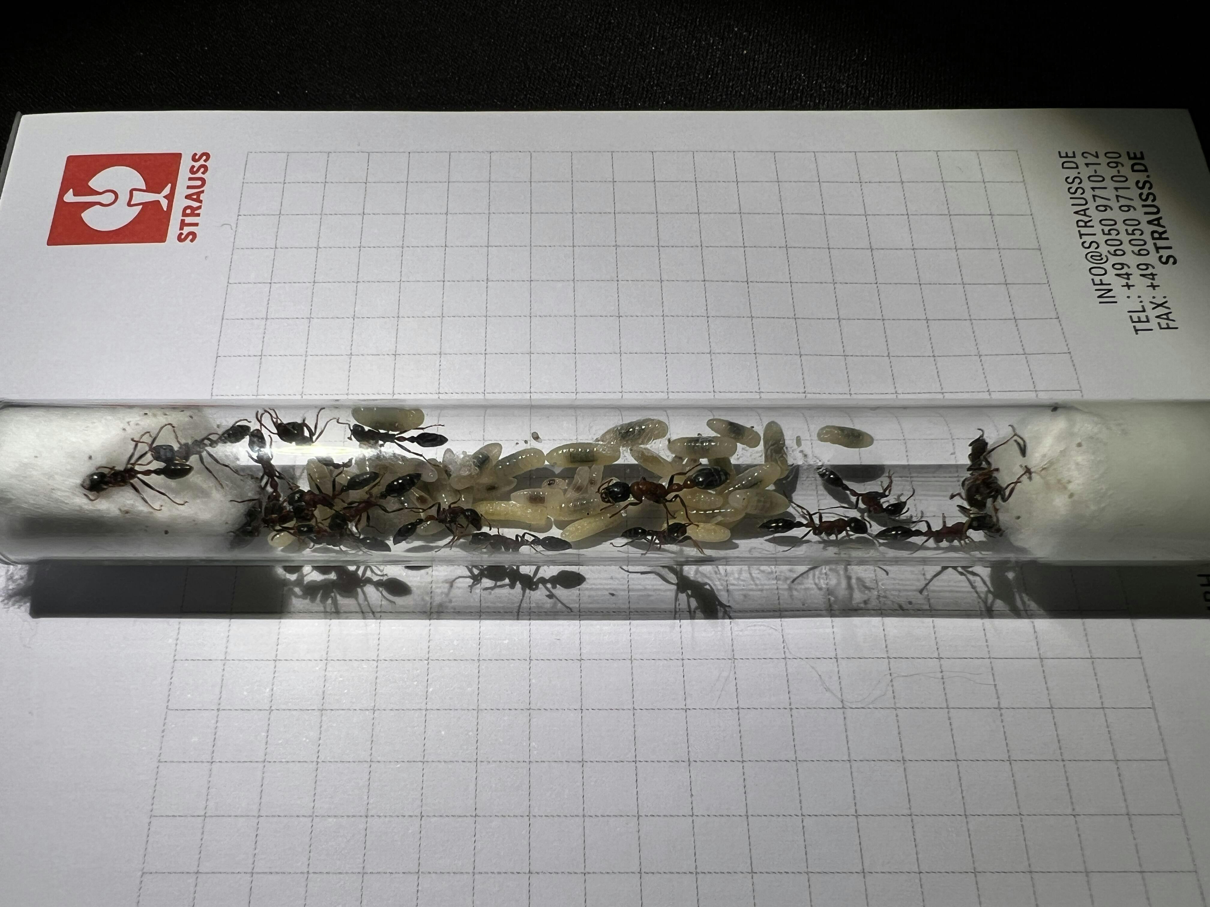 Tiere sind top angekommen. Leider ist mir 1 Königin von 3 am nächsten Tag gestorben. Aber lag wohl am Stress vom Transport, die Königin hatte Augenscheinlich auch keine Mängel. Aber 2 Königinnen sind noch da und Arbeiter, also alles Top.