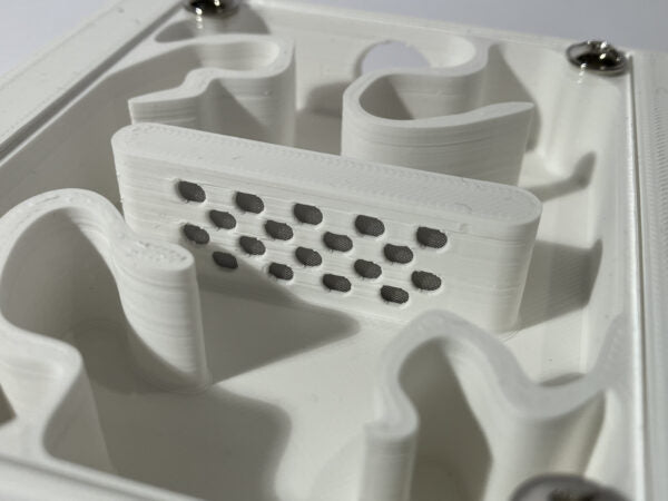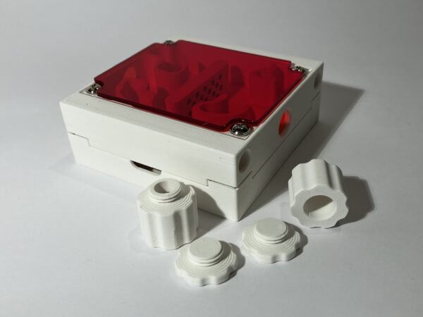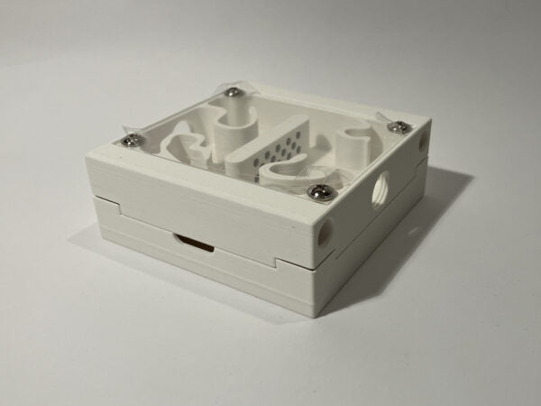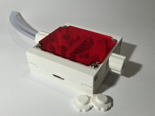 The HomeforAnts ant nest provides the ideal living environment for small ant colonies. A capillary humidification system ensures a constant supply of moisture. Intelligent hose connectors allow for secure connections and flexible hose diameters. Special plugs for hibernation and a red Plexiglas panel for effective darkening make the nest versatile. Supplied fully assembled and with gauze and cotton wool, it is ready for immediate use and suitable for ant species of any size. Optionally, a heating cable can be inserted through the 10 mm openings in the front and rear of the nest.